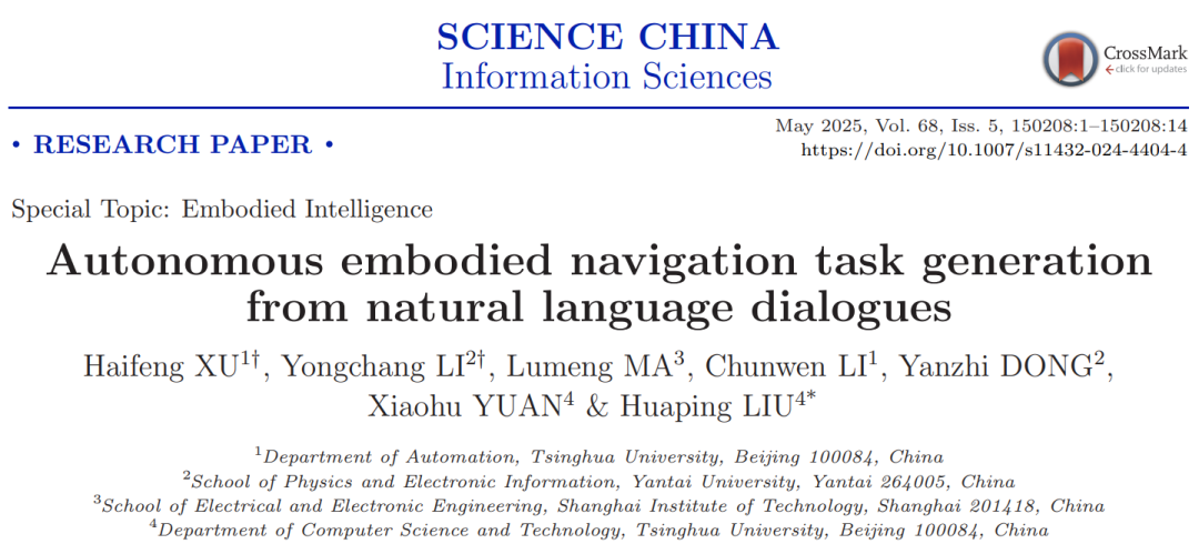 董言治副教授团队联合清华大学刘华平教授团队在机器人自主导航领域取得重要进展,研究成果《基于自然语言对话的机器人自主导航任务生成》发表于卓越领军期刊(SCIENCE CHINA Information Sciences)。