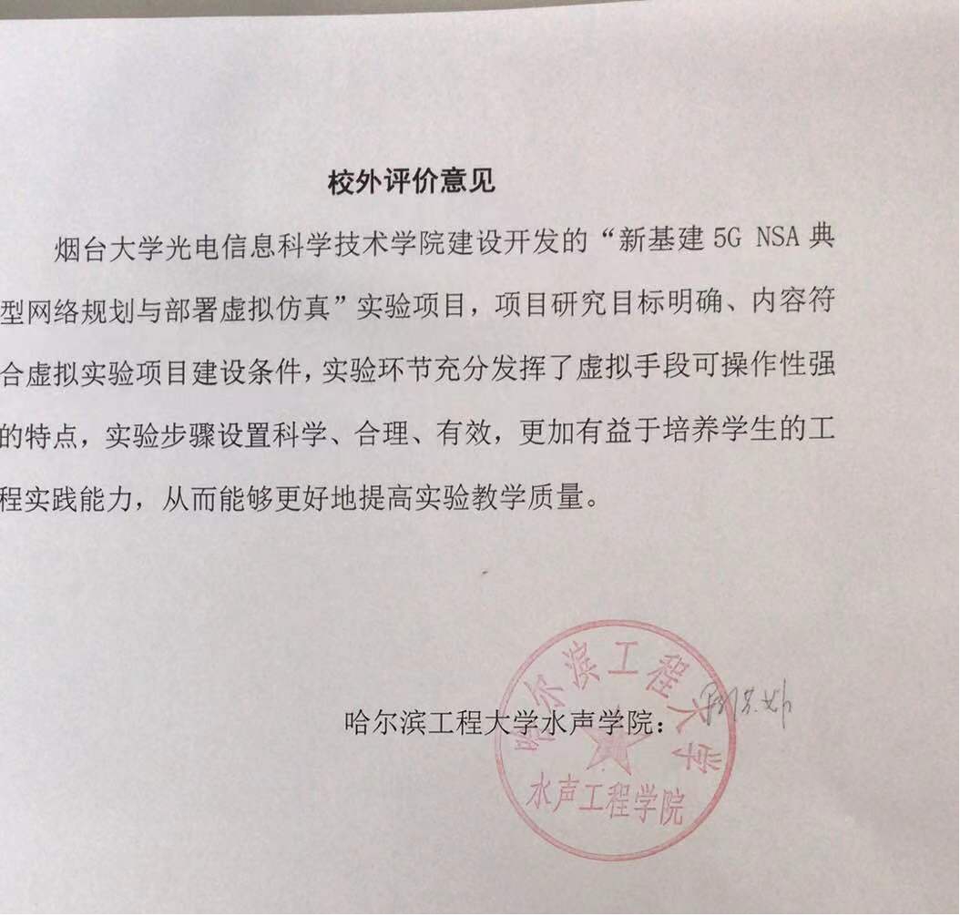 哈尔滨工程大学水声工程91视频 ,首批电子信息类国家级虚拟仿真实验教学一流课程《声波基本要素的测量与分析实验》负责人陈洪娟教授评价意见: