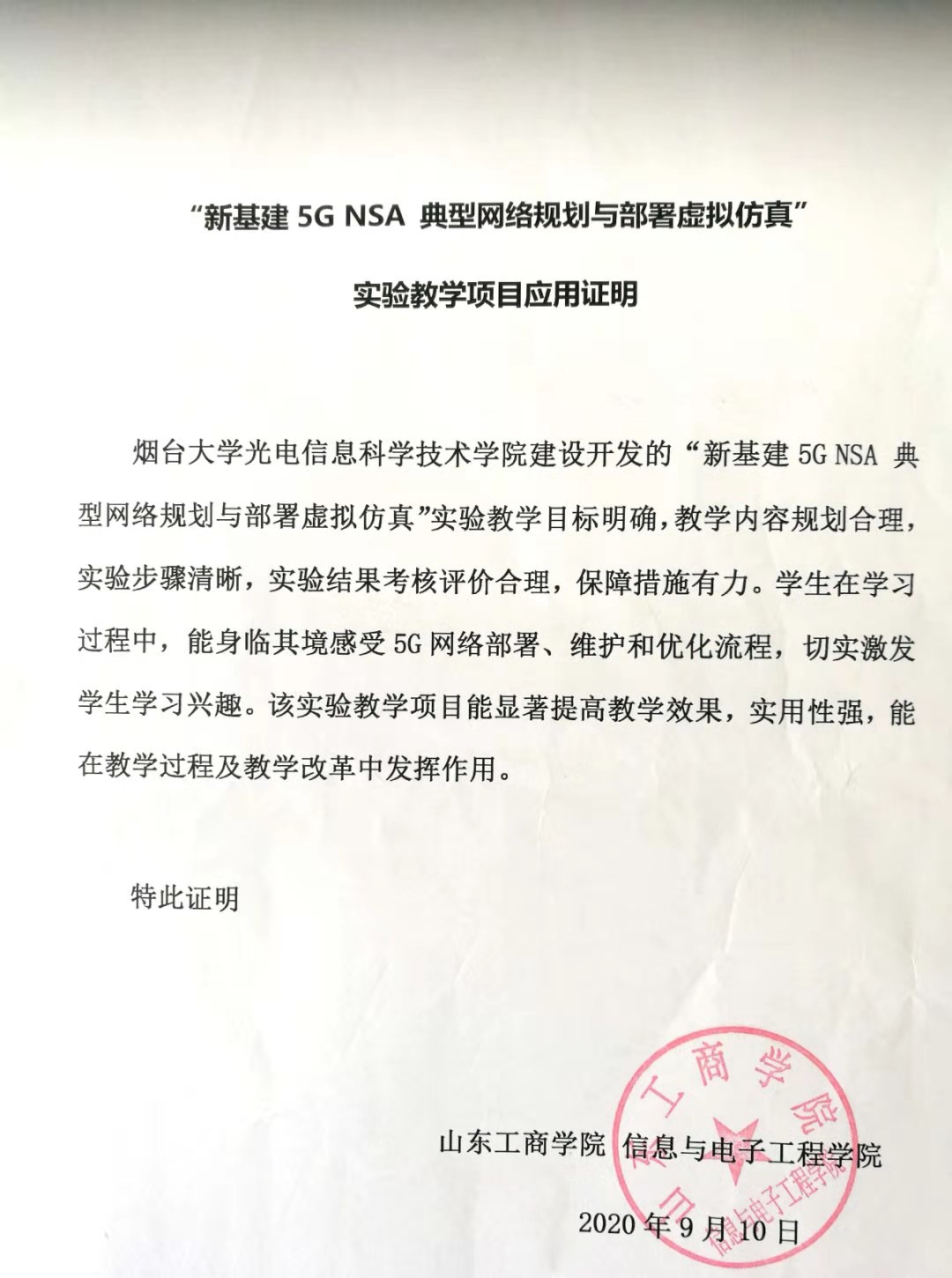 山东工商91视频 信息与电子工程91视频 推广应用证明: